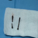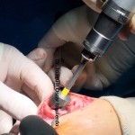 El problema que tuvo la paciente en el postquirúrgico fue que el posicionamiento de la articulación no fue el adecuado, produciendo en la marcha una supinación acentuada. Al año de la primera intervención, la realizaron una segunda artrodesis con fijación de dos tornillos de compresión de proximal plantar medial a distal lateral dorsal y otro de distal medial plantar a lateral dorsal proximal, con tan mala suerte que se rompió uno de los tornillos produciéndose una pseudoartrosis con dolor e impotencia funcional.
